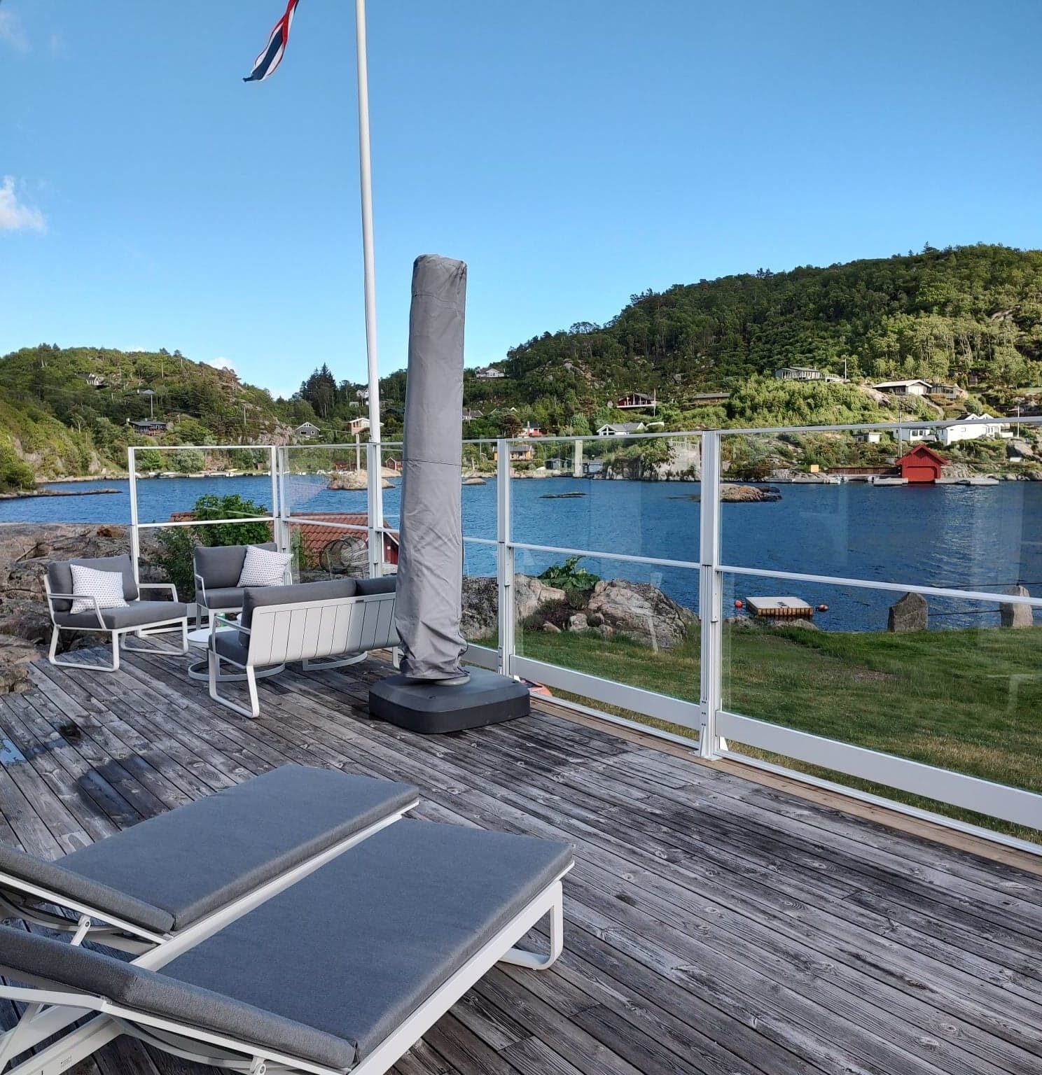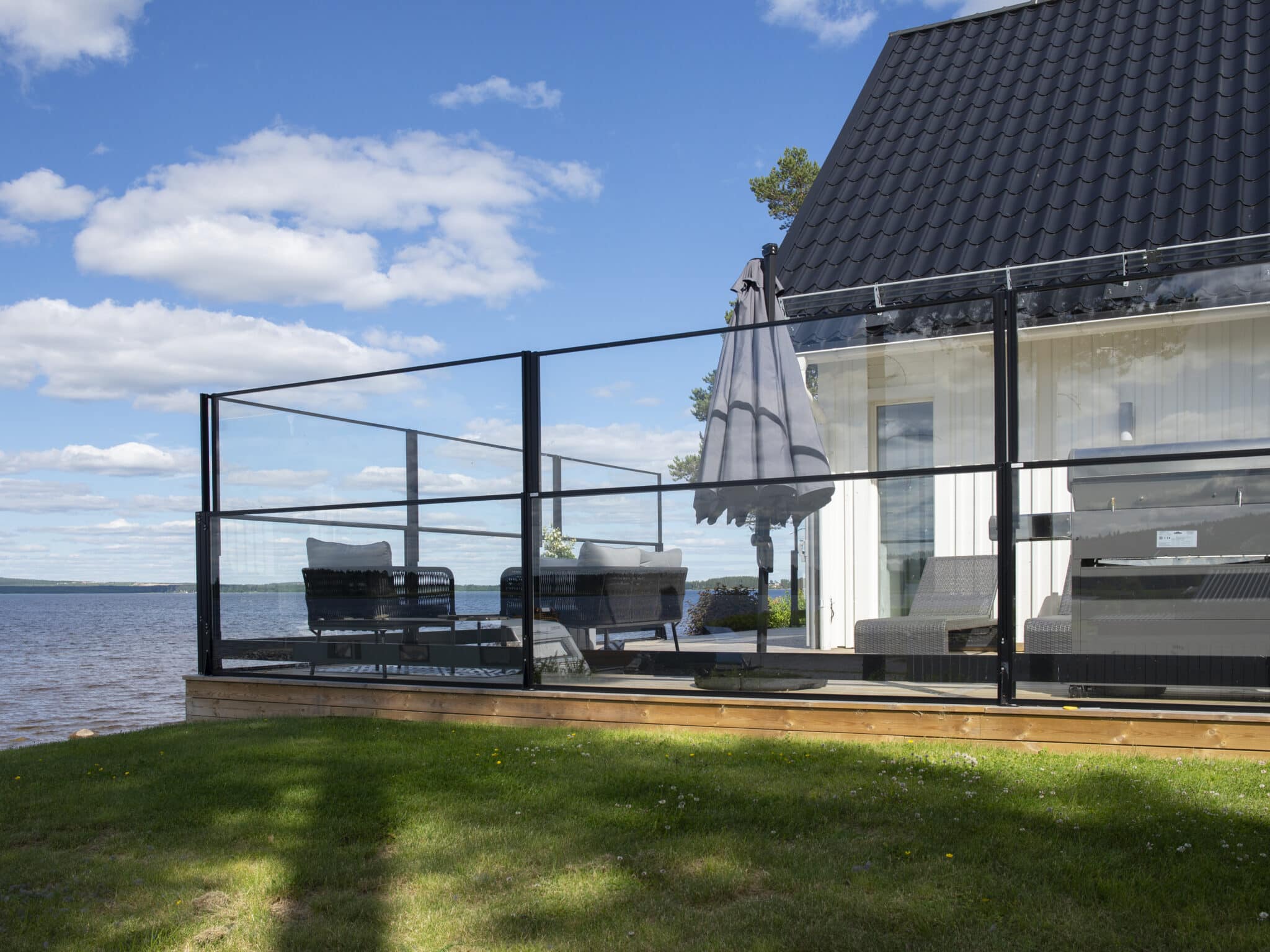 Alu Flex ist ein robustes und funktionales Glasgeländer mit der Möglichkeit, das obere Glas anzuheben und abzusenken. Bläst es kalt? Ziehen Sie einfach den Glasabschnitt hoch, um einen Windschutz zu bekommen und genießen Sie weiterhin Ihr Umfeld. Heiße Sommerbrise? Lassen Sie den Glasabschnitt unten, lehnen Sie sich zurück und genießen Sie Ihre Umfeld.